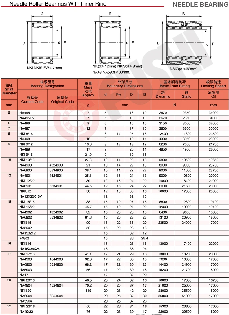 Модель NA, NKI Игольчатые роликоподшипники с внутренним кольцом