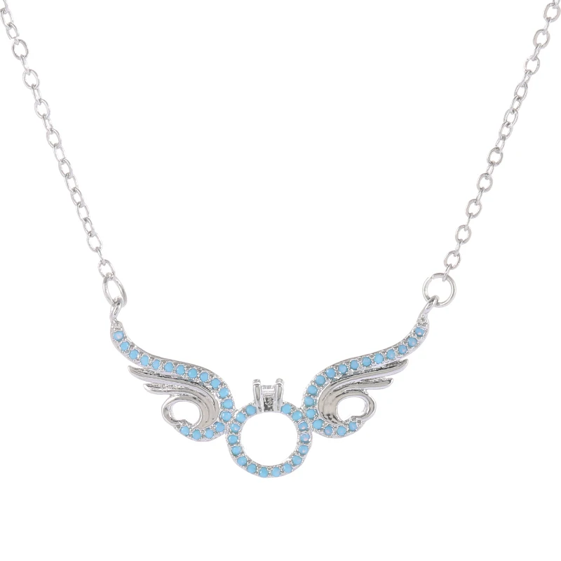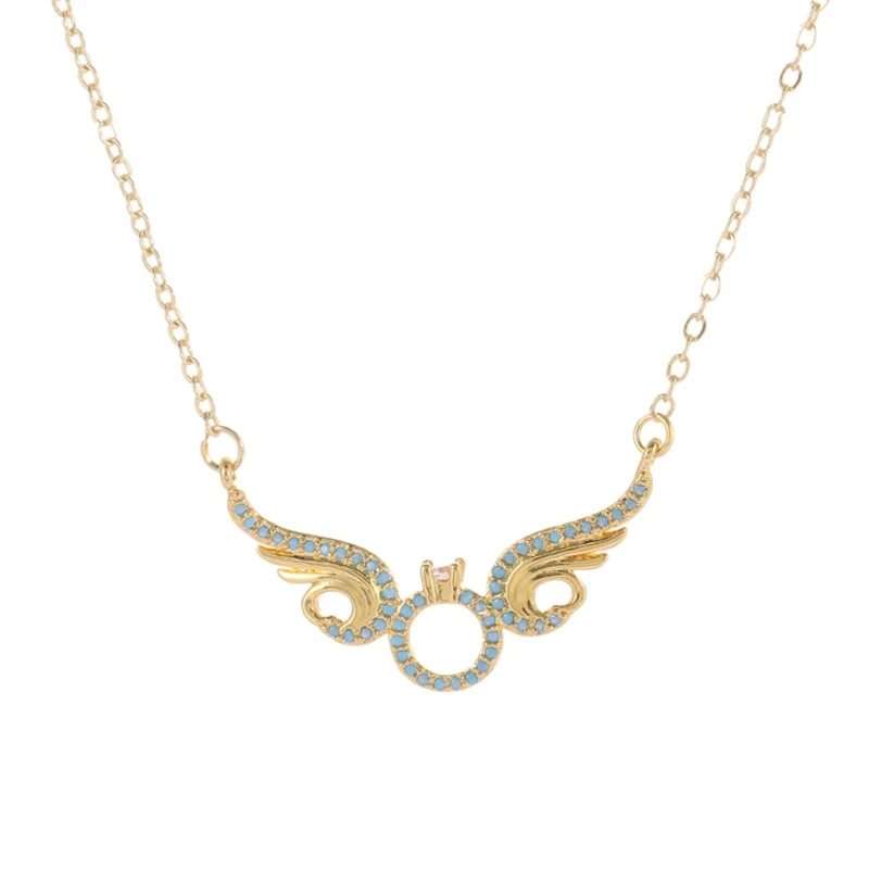 Женский кулон с крыльями ангела, инкрустированный микро цирконием, с золотой цепочкой