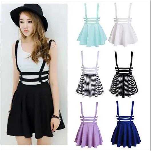 Женская юбка на подтяжках, плиссированная юбка с оборками, короткая юбка с подтяжками и молнией сзади, 2017