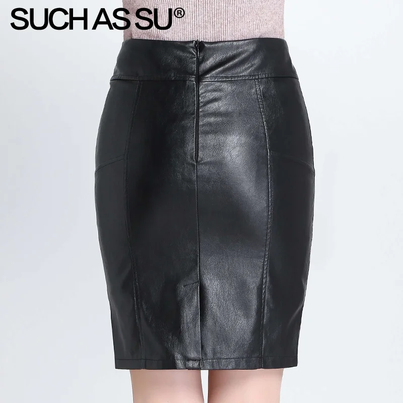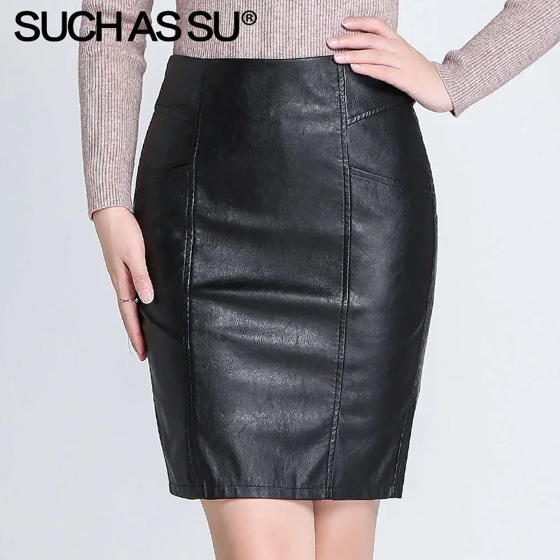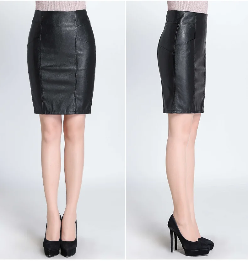 Женская короткая юбка-карандаш из ПУ кожи, с завышенной талией