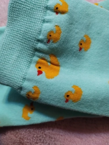 уточки на верхней части носков отличаются, где-то их куча (как на голубых), а где-то ровно. цвет уточек тоже немного отличается (разный на разных парах). белые оказались не белыми, а скорее молочными или цвета слоновой кости, но этого почти невидно. качество хорошее, продавцу спасибо
