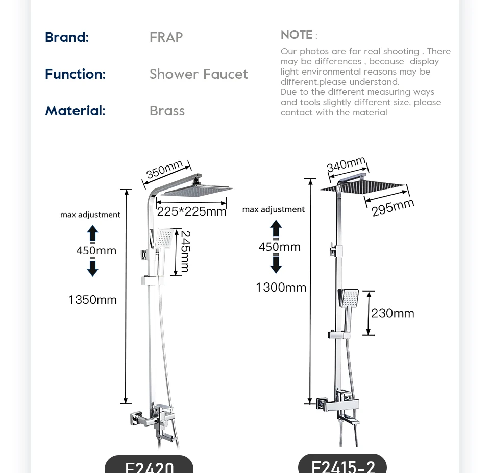 Заказывал F2420, взамен старого, абсолютно аналогичного душа, только другой марки - ORTA, который проработал 2 года и у которого пробило стенку корпуса. Frap на ощупь на порядок качественней, переключатели мягче, струи толще и ровнее, поток воды сильнее. Надеюсь не подведет в процессе эксплуатации.