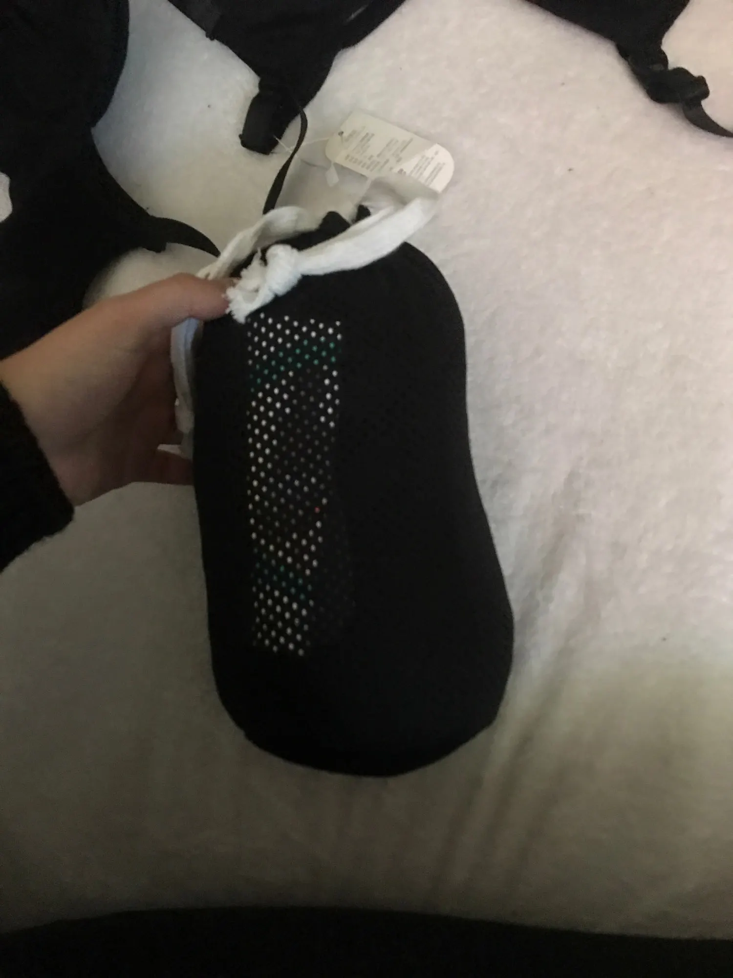 Они как на фото. Свежая ткань, полная отверстий и эластичности. Идеально подходит для лета! Цвет такой же, как на фото, и вы получаете сумку для хранения и брошюру с инструкциями по применению с различными способами использования, чтобы вы могли попробовать тот, который более удобен. У него нет запаха, и он пришел очень быстро! I'm going to order It In More colors for this summer.