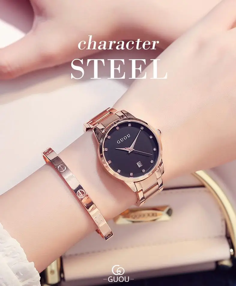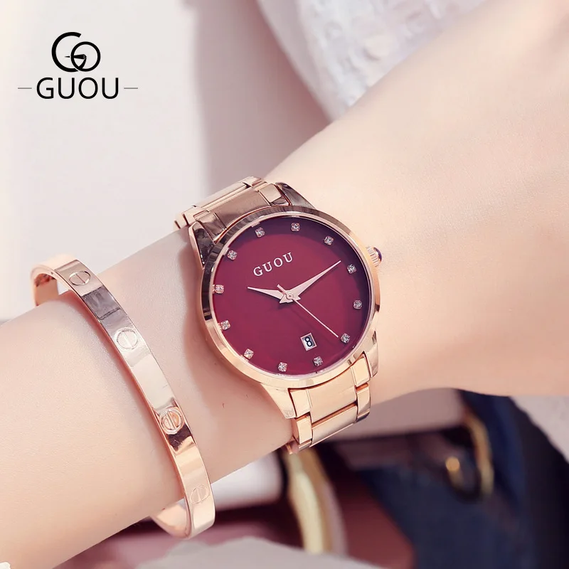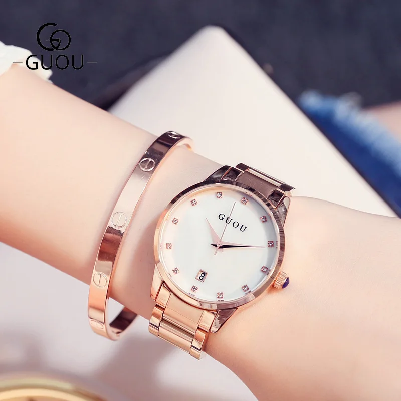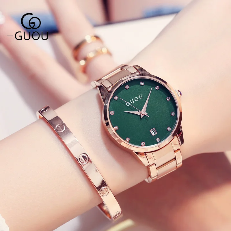 Женские Кварцевые Часы GUOU, из нержавеющей стали, со стразами