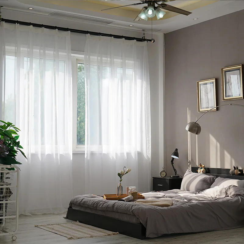 Однотонные белые шифоновые тюлевые занавески BILEEHOM на окна для гостиной, спальни, современные тюлевые занавески из органзы для свадебной вечеринки