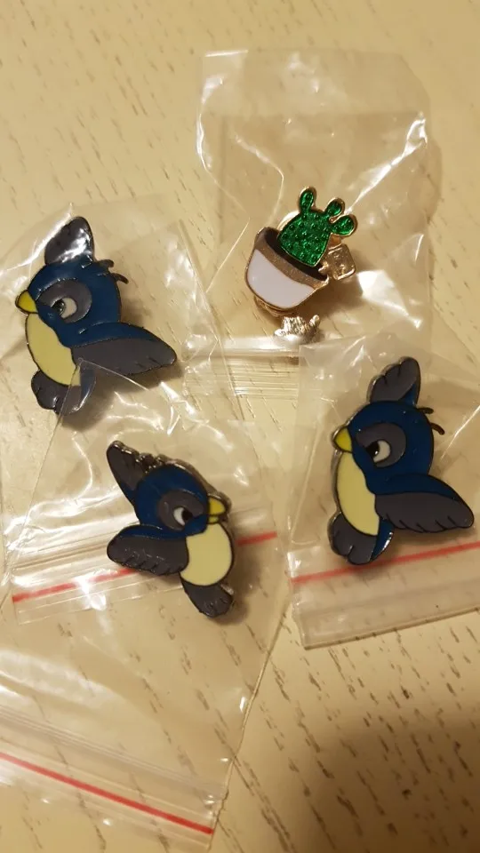 Заказ шёл 2,5 месяца. При том, почти 2 месяца по нашей стране катался. Выбрала стандартную доставку без отслеживания (потому трек отслеживался только до страны - далее уже переживала, что мелкий пакет потеряется). Но всё дошло)) Сами значки просто супер! Качественные, красивые! Фотки на джинсовке прилагаю)