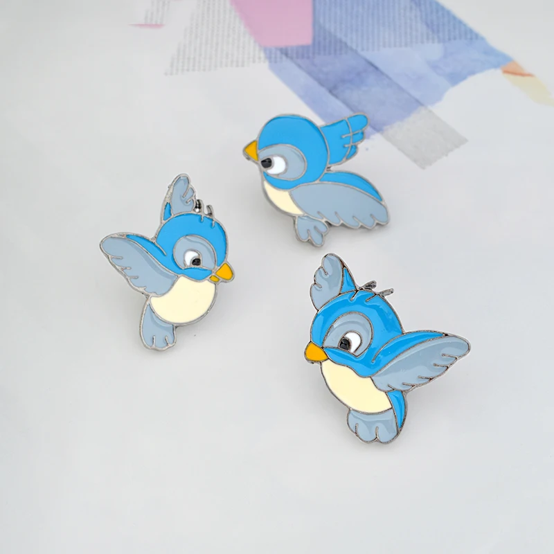 Брошь для джинсовой куртки, 3 шт.компл., эмалированная, синяя, брошь в виде птицы, с изображением летающих флисовых животных, рубашка с пряжкой, значок, подарок для детей