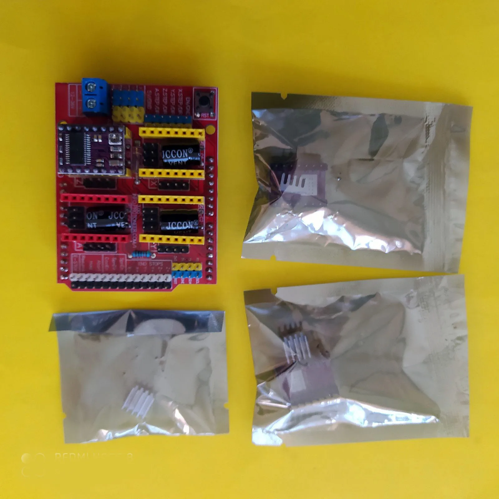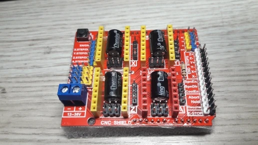 Щит с ЧПУ:Последний щит с ЧПУ версия 3Совместимость 0,9. GRBL (прошивка с открытым исходным кодом, которая работает на uno, которая превращает команды g-кода в Степпер 37 сигналов)PWM шпиндель и штифты направления4-осевая поддержка (X, Y, Z, A-может дублировать X, Y Z или сделать полную 4-ю ось с пользовательской прошивкой с помощью контактов D12 и D13)2 х торцевых стопа для каждой оси (всего 6)Включение охлаждающей жидкостиИспользует съемные A4988 или DRV8825 совместимые Шаговые драйверыПеремычки для установки микрошагового механизма (некоторые драйверы, такие как DRV8825, могут работать до 1/32 микро шагового механизма)Компактный дизайн.Шаговые двигатели могут быть соединены с контактными разъемами Molex или припаянными 4 на месте.Работает на 12-36 В постоянного тока. (на данный момент только драйверы DRV8825 могут работать до 36 В, поэтому учитывайте рабочее напряжение при включении.)Обратите внимание, что это разобранный комплект и необходимы основные навыки пайкиВ комплект входит:Щит платы 1xcnc