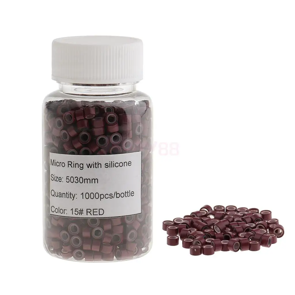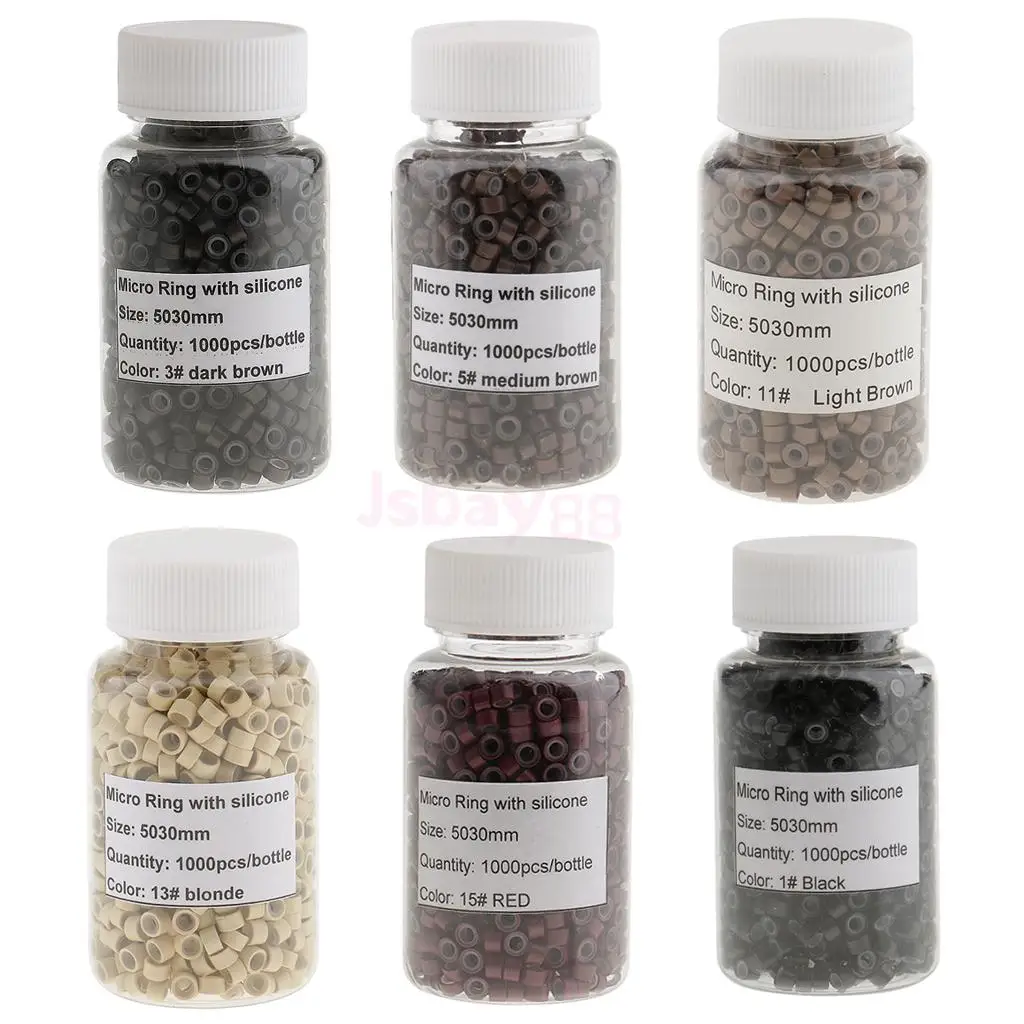 1000 шт.лот, кольца для волос, силиконовые бусины, накладные микро петли, кольца, термоусадочные, обжимные, для наращивания волос, черные, светлые, коричневые, красные