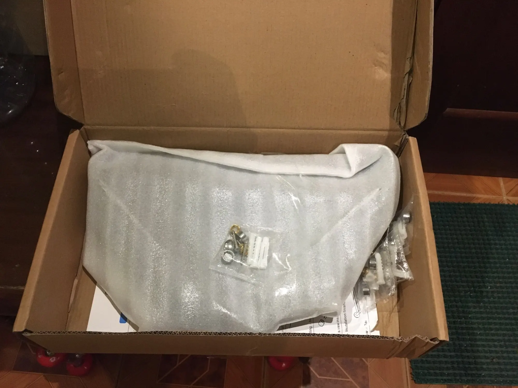 Привезли за 5 дней! Супер-быстрая доставка! Полки отличного качества, классно упакованы, крепления в комплекте. Продавца рекомендую!