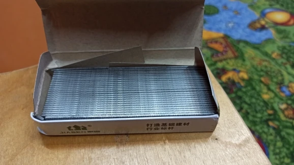 Гвозди не вскрывал, так как нет степлера. Заказывал в этоже время у другого продавца, товар не пришел, жду возврата денег. Надо было и степлер заказывать в месте с гвоздями у этого продавца.