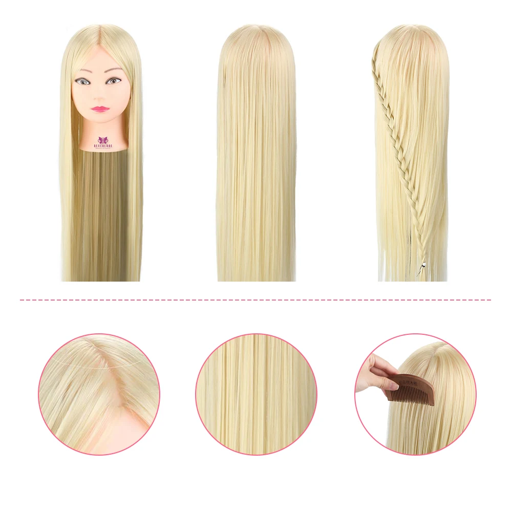 Голова-манекен для укладки волос Neverland, 30 дюймов, жаростойкое волокно, для практики стрижки волос, блонд, манекен для парика