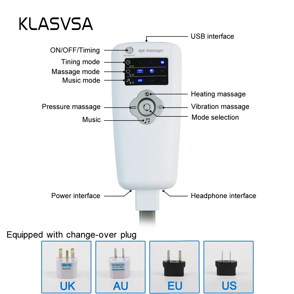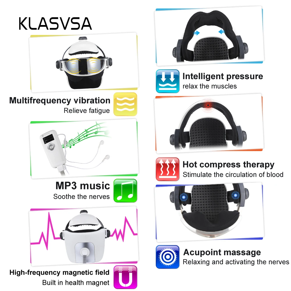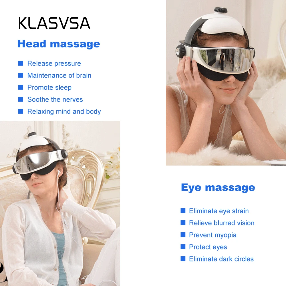 KLASVSA Электрический массажер для головы и шеи, инфракрасное Отопление, вибрация, маска для глаз, массаж, давление воздуха, мышечный Стимулятор, забота о здоровье