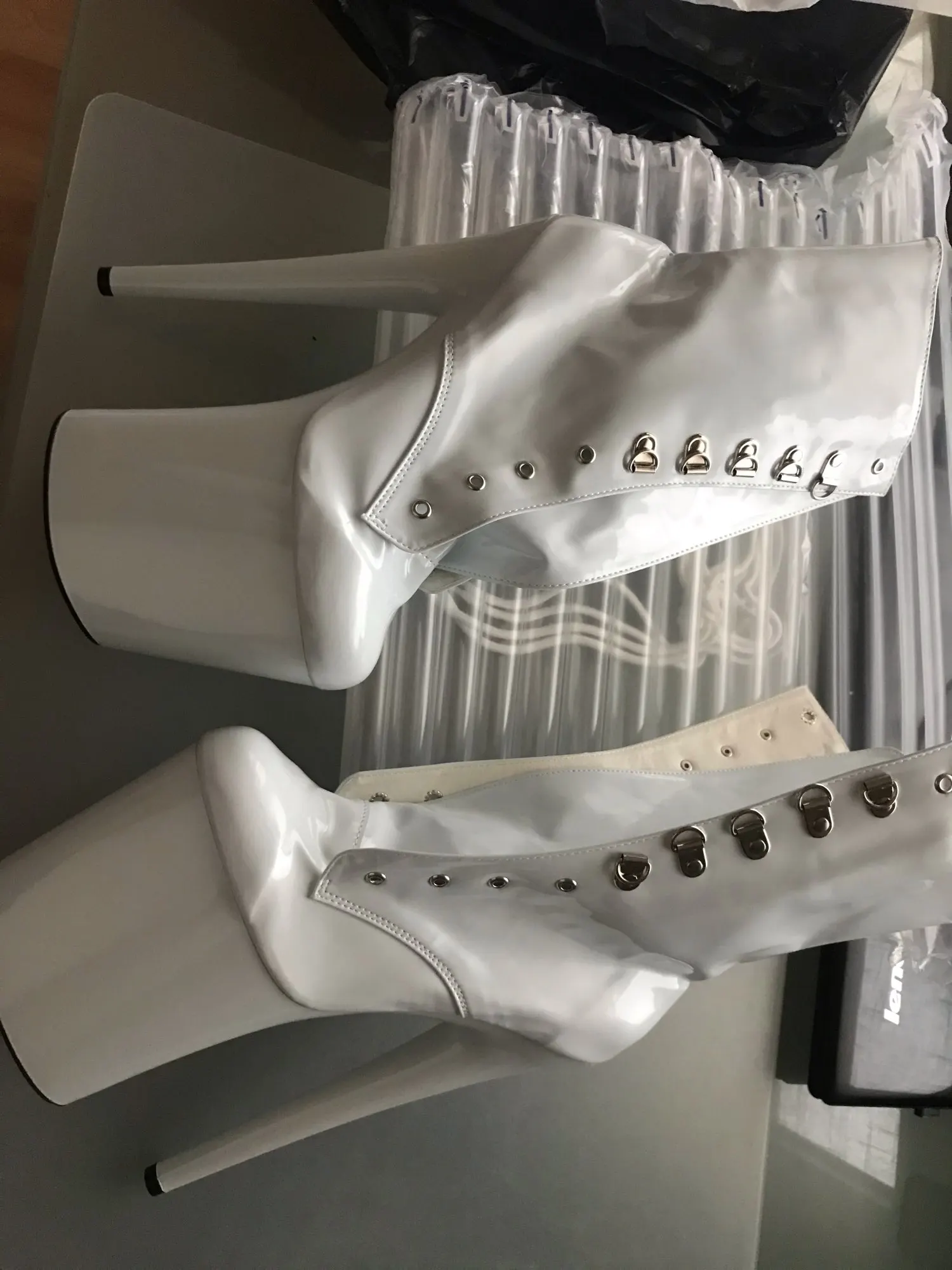 Доволен покупкой. Размер правильный Для европейца 37. Это удобные и очень красивые сапоги. Материал не плохой, блестящий и гибкий винил, он не жесткий. Они не выложены, поэтому лучше носить носки. Я еще не пробовал их танцевать, но они выглядят стабильными. Качество/цена в порядке. Прибытие заняло более трех недель, хорошо упаковано, но они прибыли морщинистыми.
