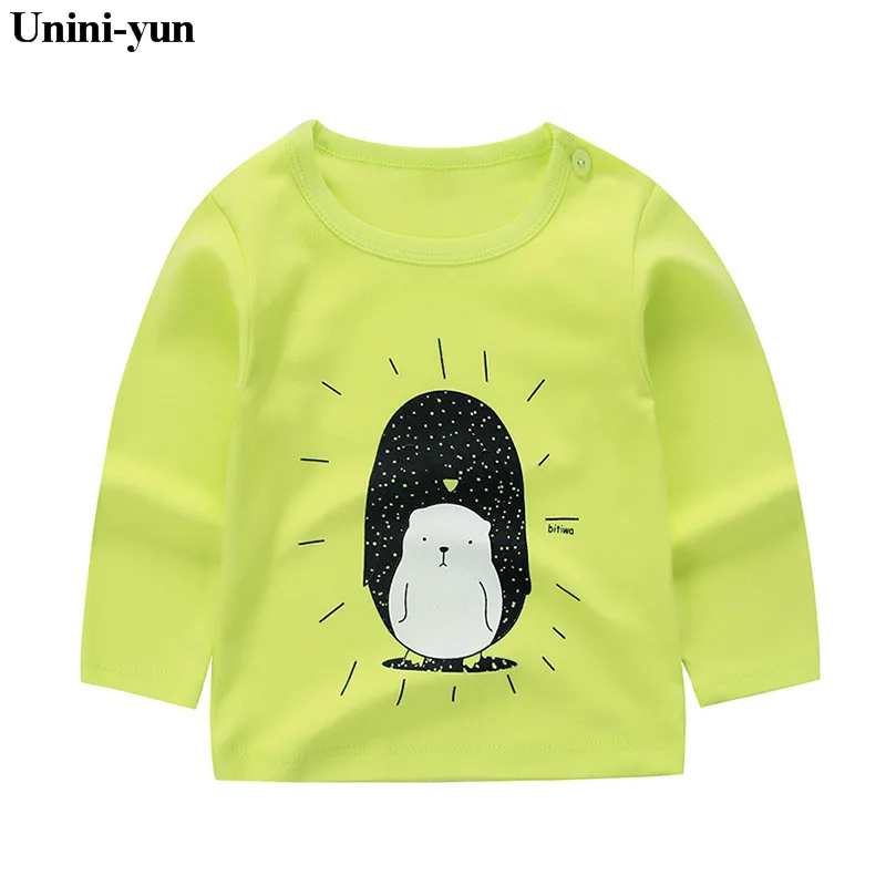 Зеленые хлопковые Повседневные детские футболки Unini-yun с длинным рукавом для мальчиков, футболки для малышей, лидер продаж, Детские футболки для девочек 6m9m12m18m24M