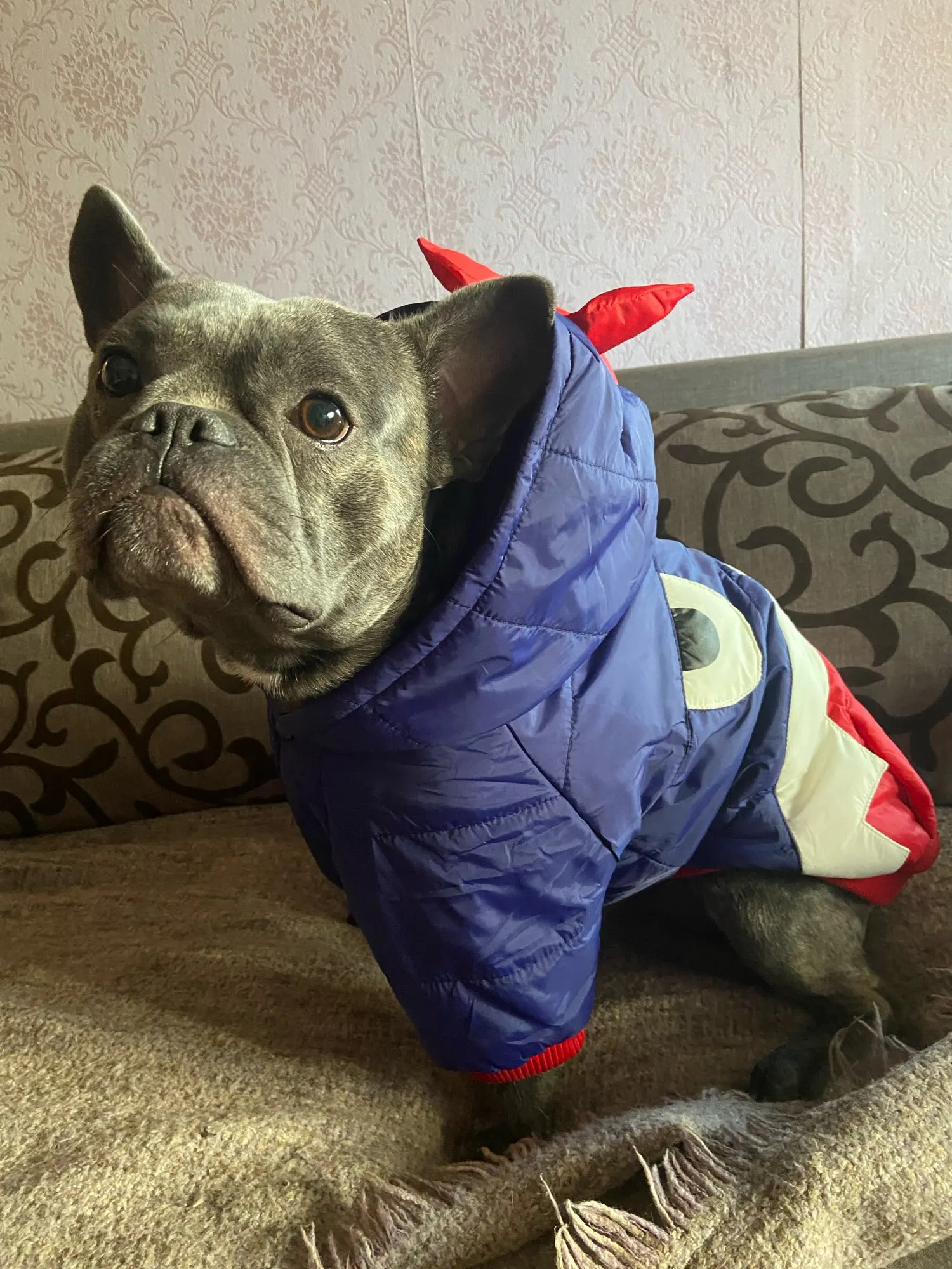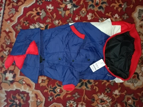 У нас бульдожка, на неё тяжело подобрать одежду, т.к. обхват груди примерно такой же, как у больших собак, а длина существенно меньше. Поэтому по размеру куртки в груди - все ок, а по длине очень большая ( Но ничего. Качество очень крутое, куртка не слишком тёплая - наполнитель есть, но не очень плотный, т.е. больше на весну-осень. Размерный ряд соответствует заявленному. Пришло в Москву очень быстро - 1,5 недели.