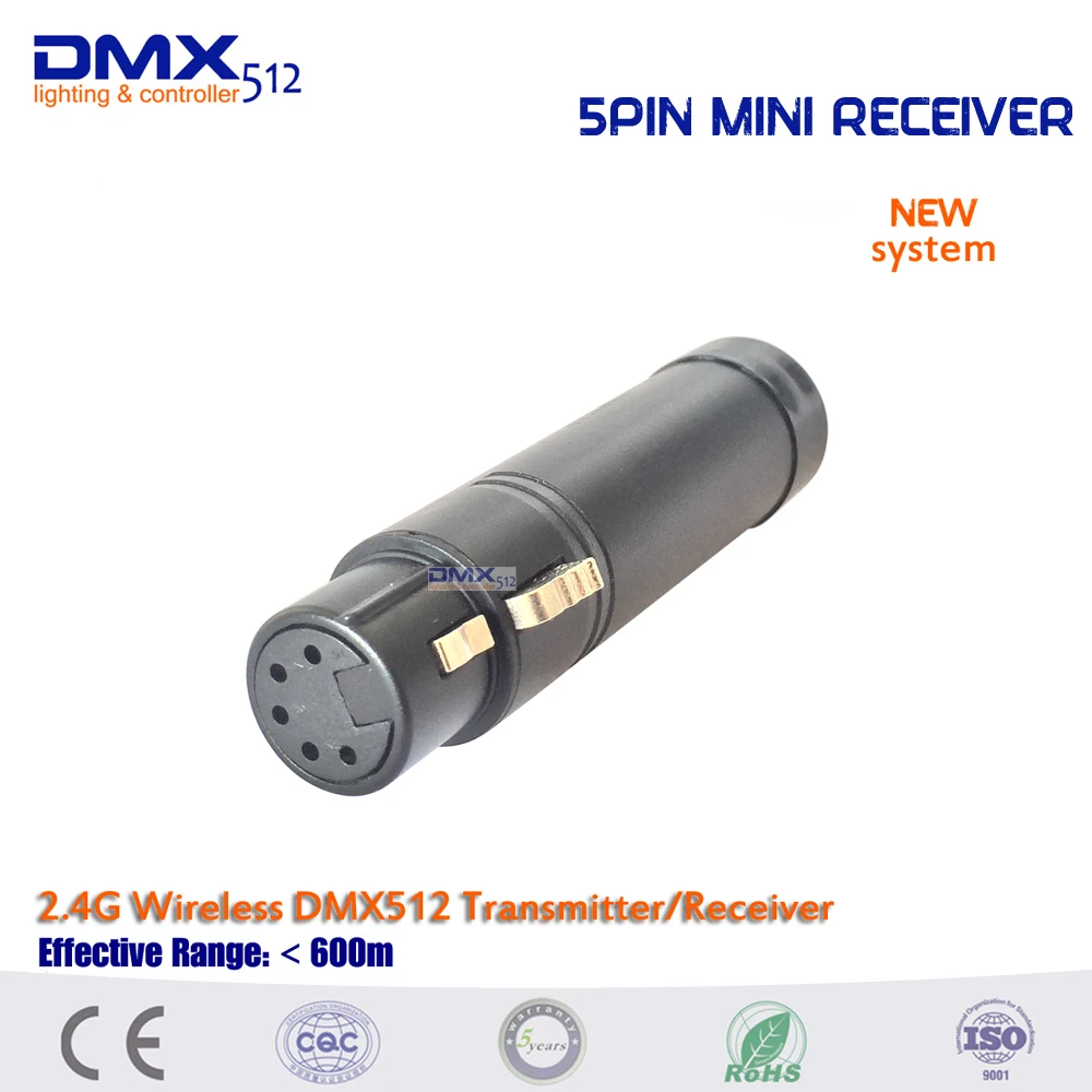Беспроводной приемник/передатчик DMX512 передает стандартные данные протокола DMX512 (генерируемые консолью) беспроводным способом, которые решают проблемы управления освещением беспроводной передачи полностью между контроллером освещения и освещением, освещение и так далее. Он избавляется от необходимости полностью полагаться на соединительные кабели.