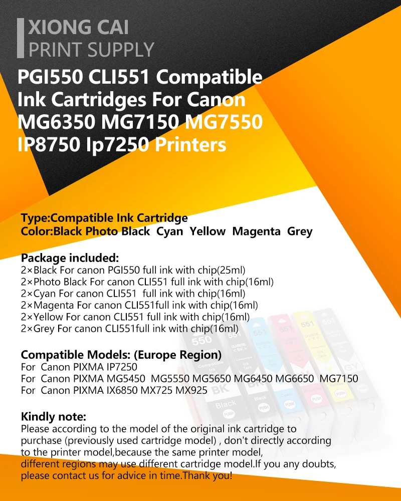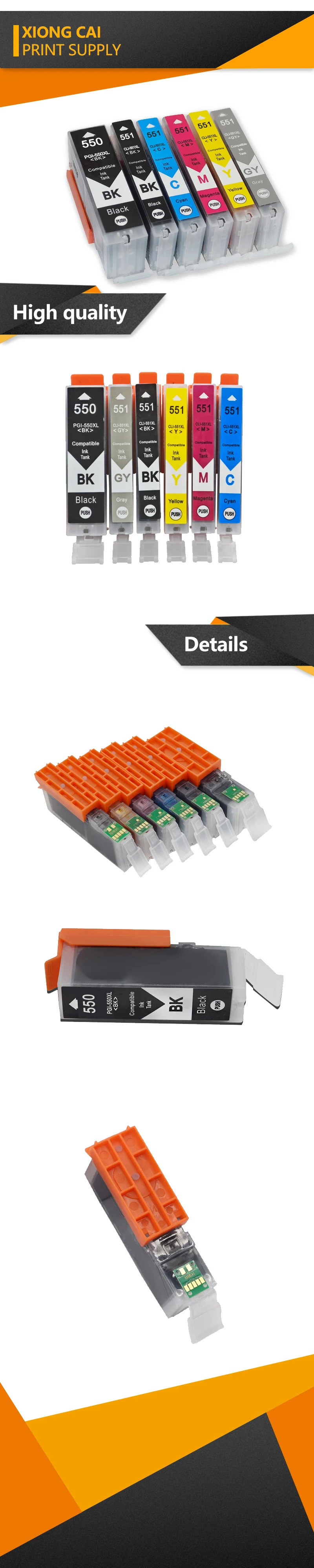 Номер моделиXiongCai Compatible Cartridge For Canon 550XL 551XL PGI-550 CLI-551 XL