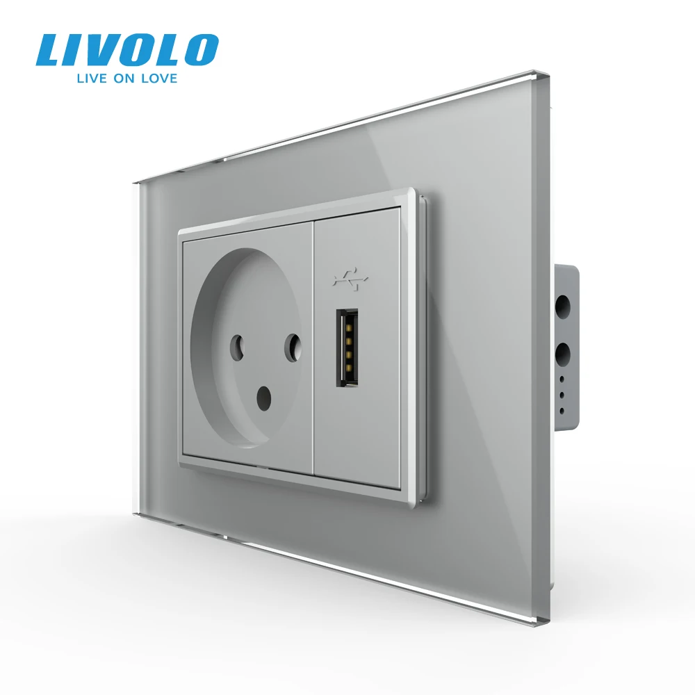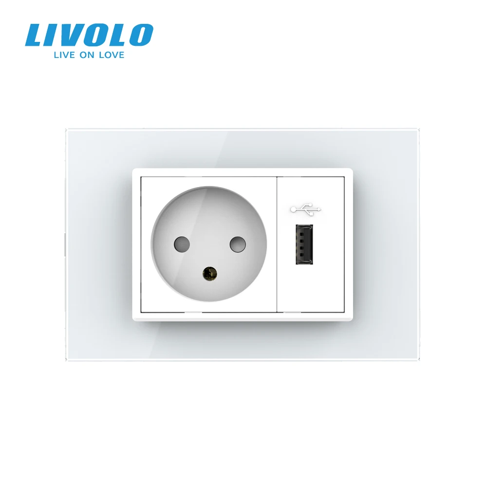 Настенная розетка Livolo, 16 А, с зарядным устройством USB 2,1 а, панель из хрустального стекла