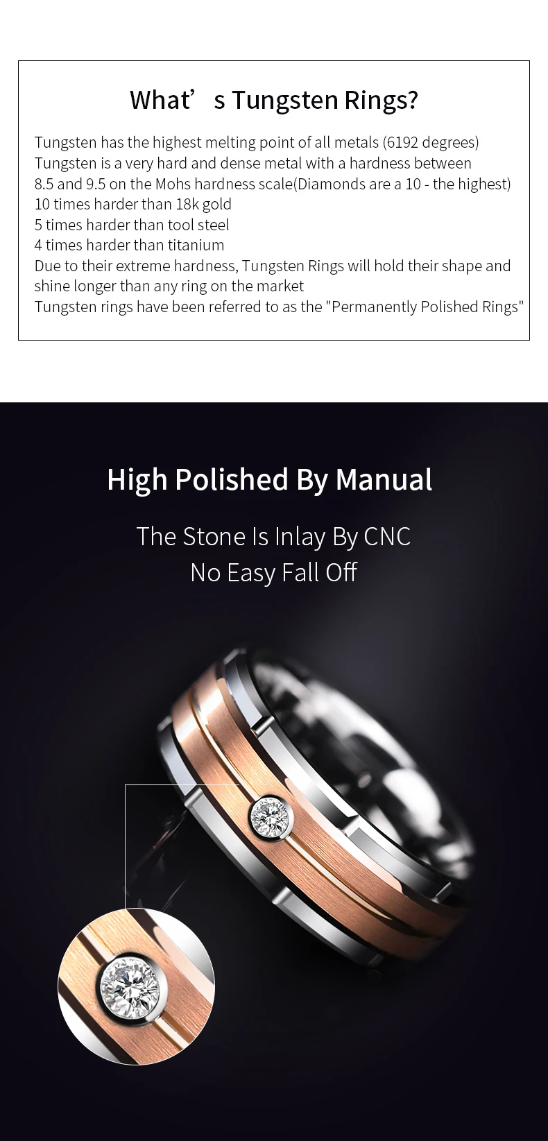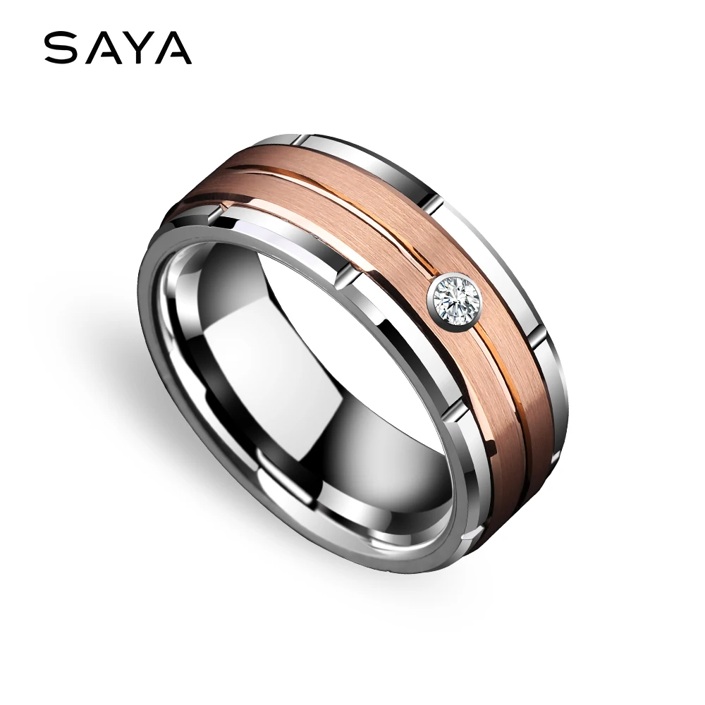 Обручальные кольца из вольфрама для мужчин и женщин с покрытием из розового золота с матовой отделкой с кубическим цирконием, по индивидуальному заказу, бесплатная доставка