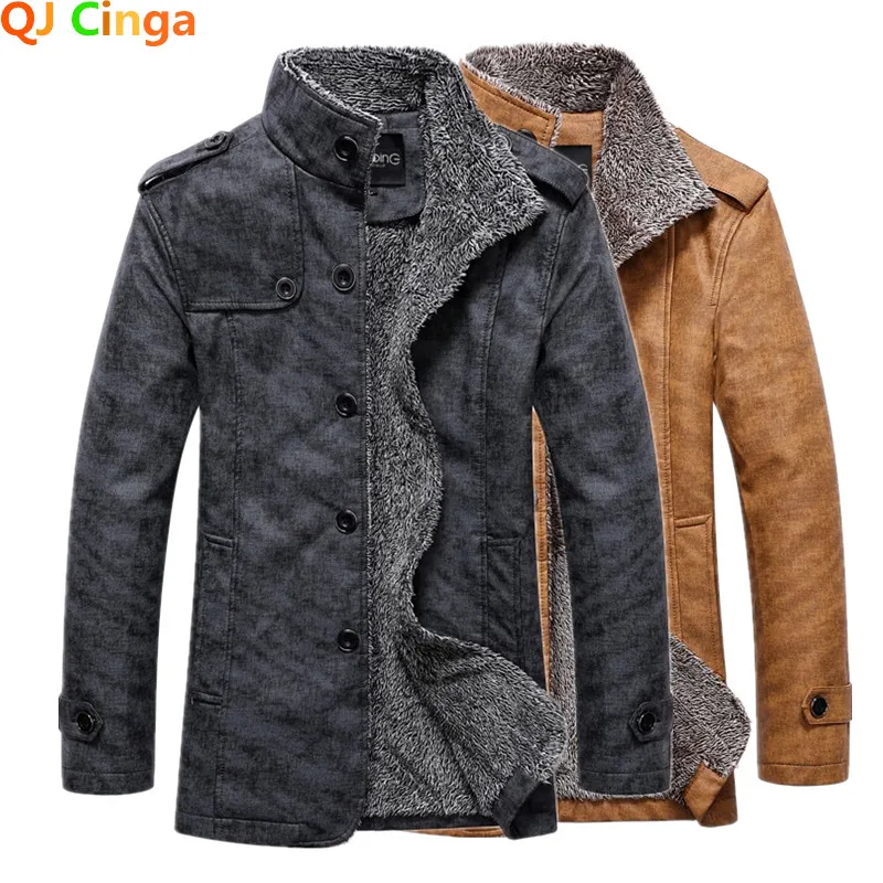 Мужская повседневная куртка из искусственной кожи, Толстая теплая к...