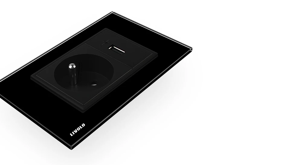Livolo французская Розетка с usb гнездом белаячерная кристальная стеклянная панель, AC 110 250V 16A настенная розетка, VL-C9C1FR1U-1112