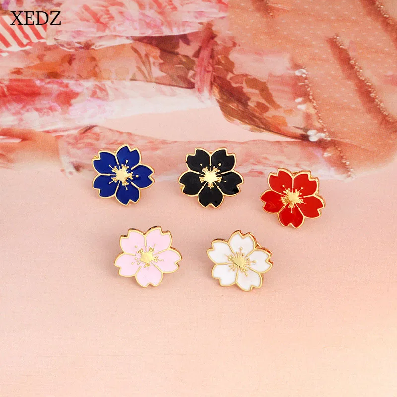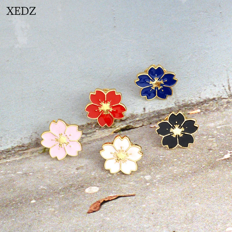 Брошь женская эмалированная из металлического сплава с краснымирозовымичернымибелымисиними цветами
