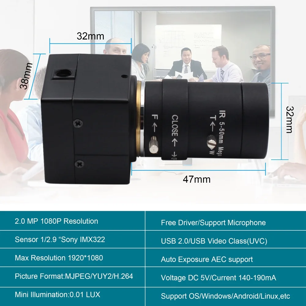 USB-веб-камера 5-50 мм с переменным фокусом, Full Hd 1080P, CMOS OV...