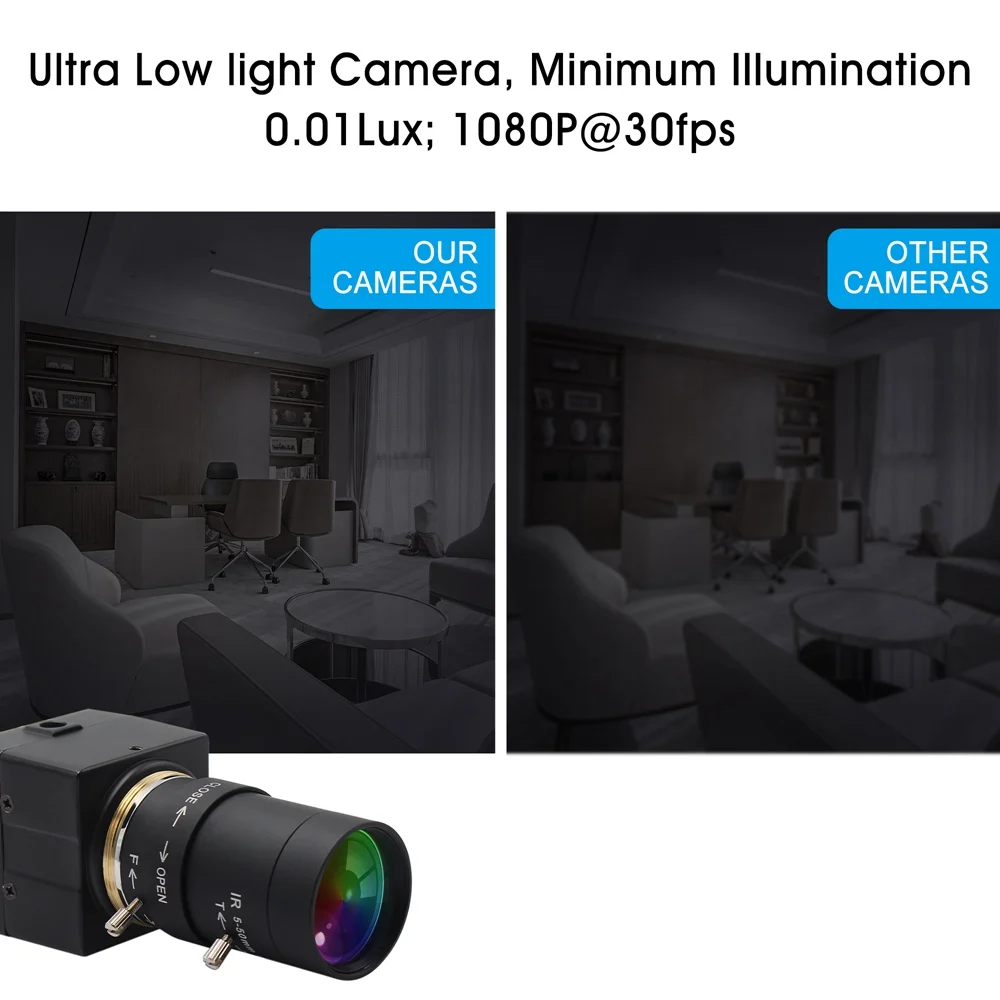 Веб-камера ELP USB, 5-50 мм, с варифокальным объективом, 0,01 люкс, при сласветильник, Full HD, 1080P, H.264, производственная машина, USB-камера с UVC