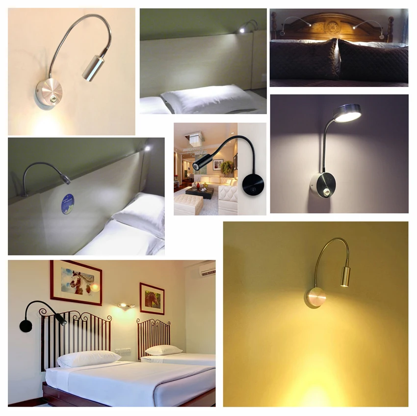 3W светодиодный настенный светильник с переключателем, Современная прикроватная тумбочка для спальни, освещение для чтения, регулируемый шнур, беспроводнойУстановите на изголовье