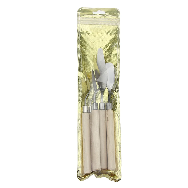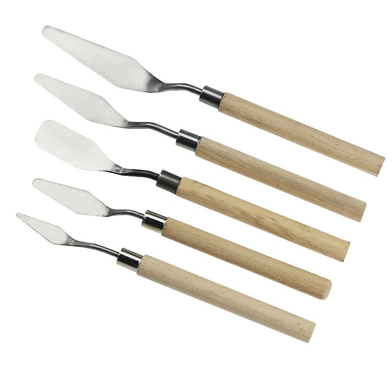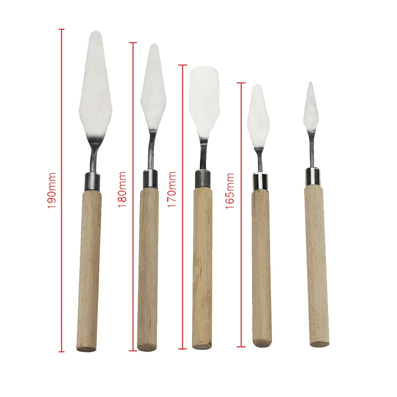 UANME 5 шт. скребок для палитры из нержавеющей стали набор Ножи-шпатели для художника инструменты для живописи маслом лезвие ножа с деревянной ручкой