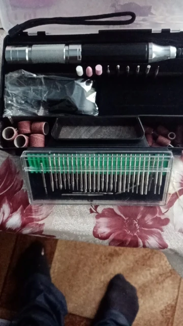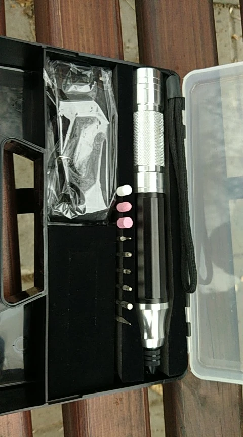 Заказ был отправлен быстро. Попробовал на разных поверхностях. По серебру царапает, но нужно зафиксировать изделие в мини тисках. По стеклу и пластику даже не царапает, хотя блогеры говорили что у них получалось. По дереву лучше всего гравирует, можно на весу держать одной рукой а другой гравировать. Шлифовальными, наждачными и другими насадками что идут в комплекте можно чистить от ржавчины металлы, делать маникюр, обрабатывать камни. Работает тихо. Скорость вращения очень хорошая, ни разу сверло не останавливалось во время работы. В целом очень доволен покупкой и выбором.