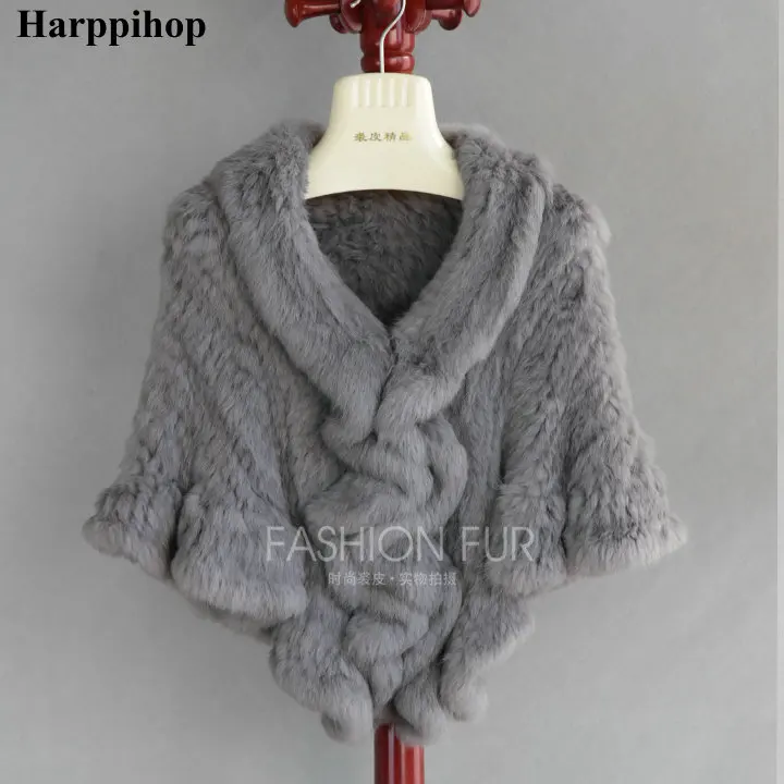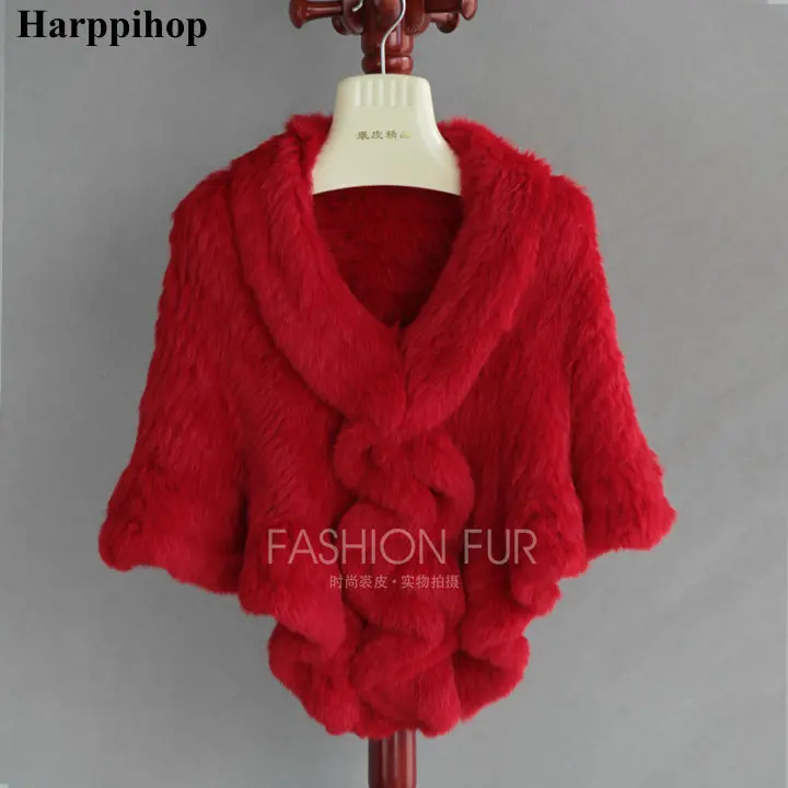 7 цветов продукта настоящий кроличий мех вязаная накидка с гофрированным подолом с мехом кролика кроличий мех накидка Для женщин натуральная вязаная меховая накидка-шаль Обёрточная бумага