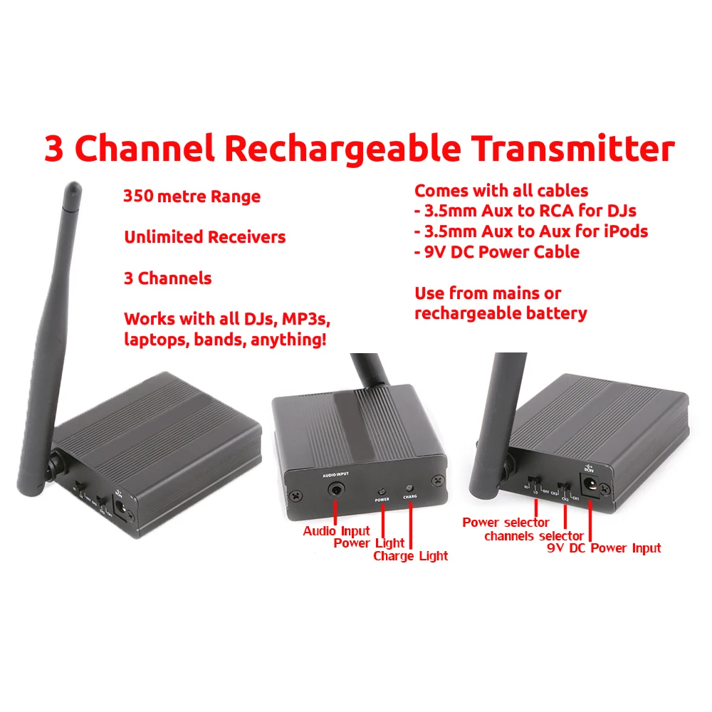 50 x Беспроводные складные наушники для дискотеки 3x 350mtr передатчики(Поддержка 3 аудио, работает одновременно) 6xaudio кабели (3xrca/3x 3,5 мм) 3 x сетевой адаптер (Великобритания/евро/США/Oz) Сообщите нам, если вам нужна штепсельная вилка стандарта Великобритании, евро, США или Oz Все, что вам нужно, это наше здесь!