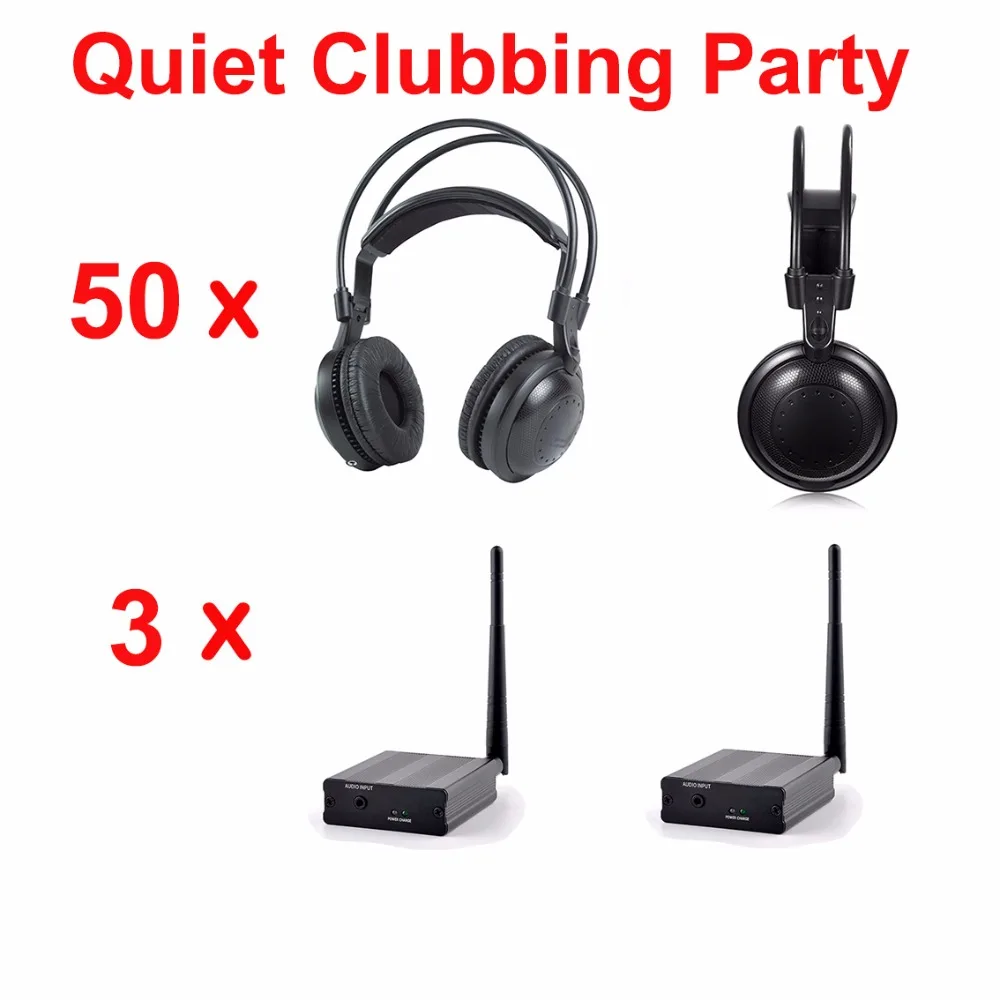 Самые профессиональные беспроводные наушники Silent Disco compete system-тихий комплект клубных вечеринок (50 наушников + 3 передатчика)