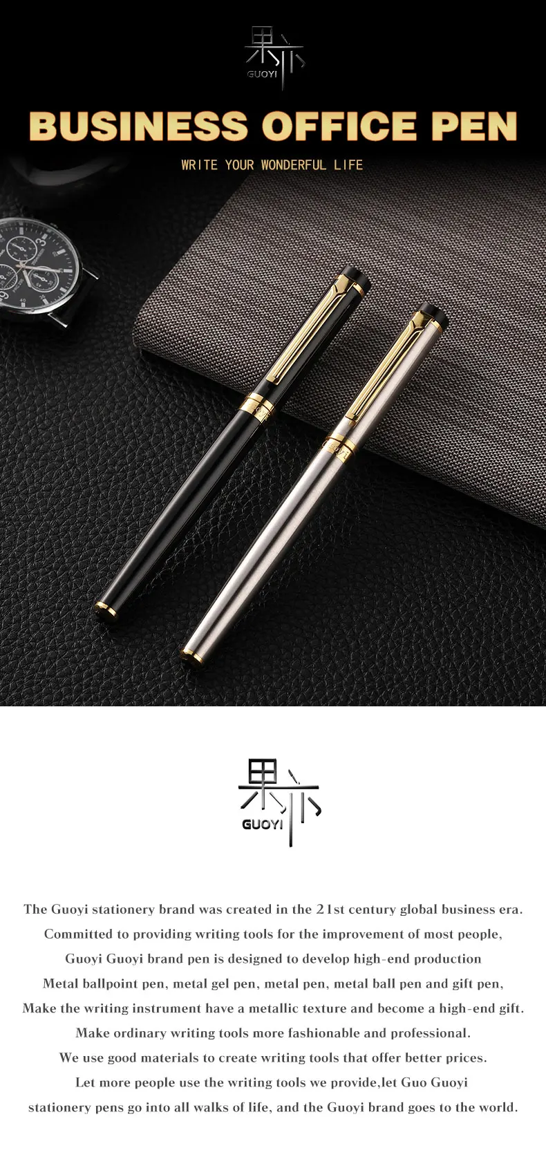 Guoyi D08 класса люкс Eenvoudige Бизнес экзамен металла high-end подарки массовое изготовление на заказ логотип гелевая ручка для подписи журнал леверт