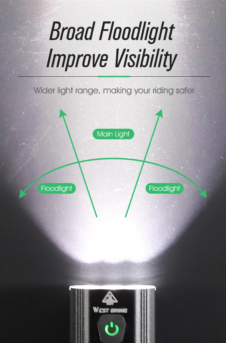 Велосипедный фонарь WEST BIKING, водонепроницаемый яркий индукционный велофонарь с USB-зарядкой