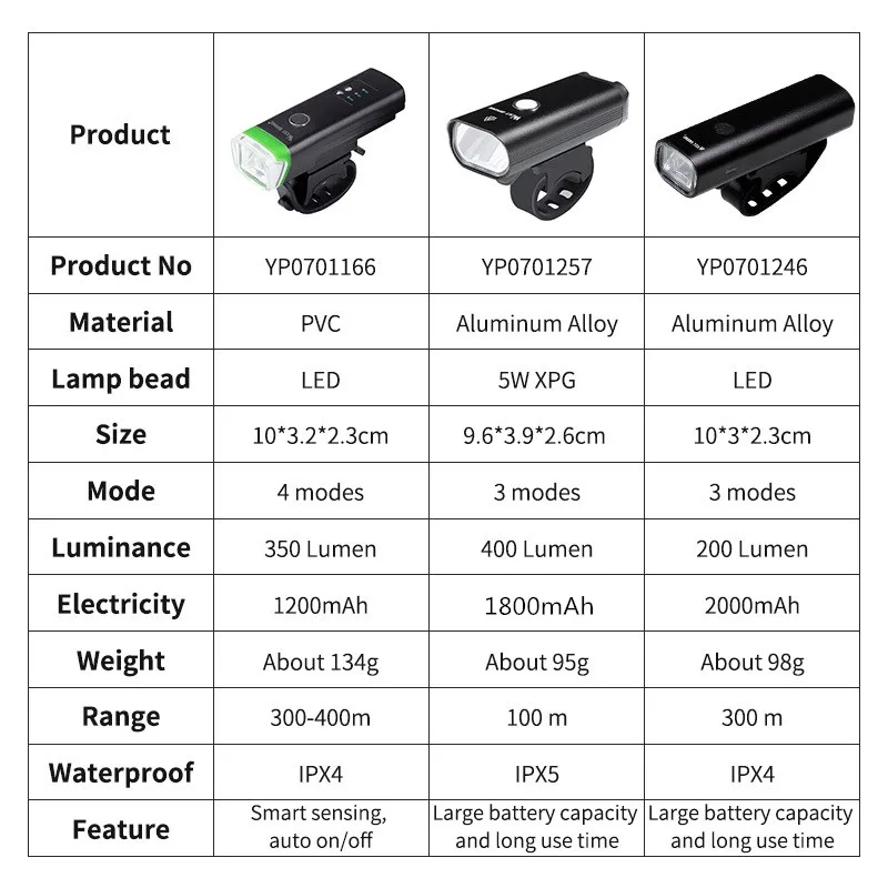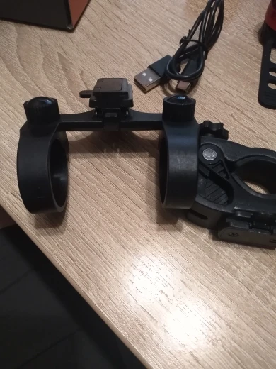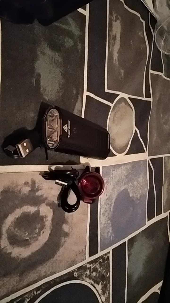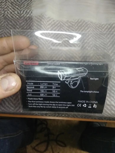 Фонарик бомба. Пришел за 24 дня в Алматы. Ярко светит, не точечно и не сильно рассеивает свет, для меня идеально, и не слепит прохожих: верхняя заслонка не позволяет рассеиваться свету вверх. Упакован отлично, в несколько пупырок, что очень радует. Коробочка слегка помята, но не критично. Заказала с задним фонарем - корпус которого алюминиевый. Задний фонарь светит рассеяно, (мерцание не быстрое) и не бьет по глазам сзади едущих велосипедистов. В комплекте к каждому фонарю юсб кабель (micro USB) для зарядки. Крепление отличное - резинки плотные, крючок для фиксации глубокий, хорошо держит фонарик. Передний фонарь легко снимается с резинового крепления, что очень удобно (на фото). Передний фонарь с датчиком света. Очень довольна покупкой.
