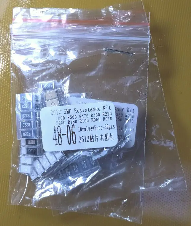 50 шт. 1% 2512 SMD комплект образцов резистора, 10 ценностей 5 шт. = 50 шт. 1R00 R500 R470 R330 R220 R200 R150 R100 R050 R010