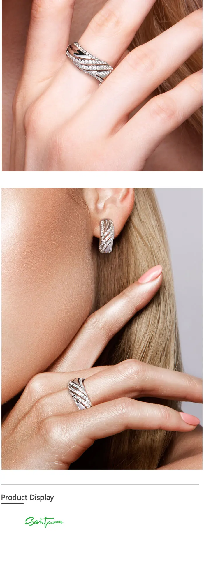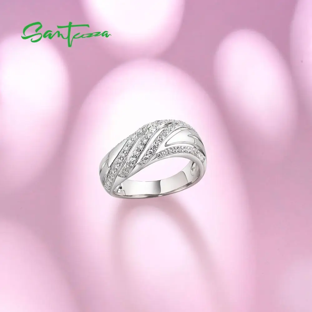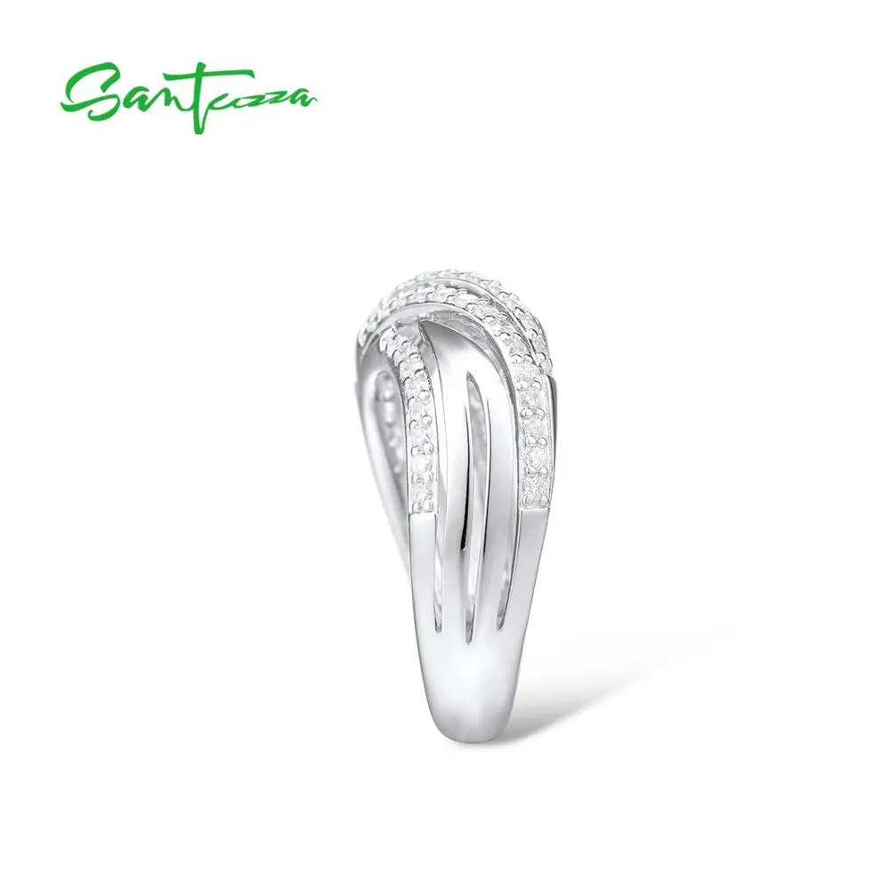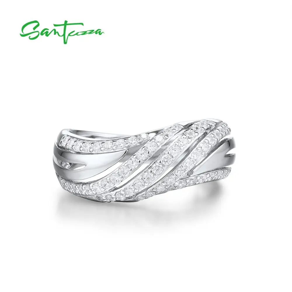 Женское серебряное кольцо SANTUZZA, из серебра 925 пробы с белым кубическим цирконием, обручальное кольцо, модные ювелирные украшения