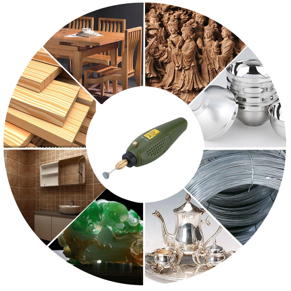 Это профессиональный инструмент для резки, гравировки, фрезерования, шлифования, рисования, обрезки, полировки, удаления и сверления. Он предназначен для применения алюминиевой пластины, тонкой медной доски, пластиковой доски, ДСП, печатной платы, эпоксидной доски. Особенности: Набор гравировки шлифовальной машины необходим для самостоятельной резьбы и шлифования. Этот электрический резной инструмент имеет очень мини-шлифовальный корпус, удобный в использовании. Подходит для резьбы по дереву с использованием агата. Для шлифовки алюминиевой пластины, тонкой медной доски, пластиковой доски, ДСП, печатной платы, эпоксидной доски. Идеальная электрическая шлифовальная машина для резки, гравировки, фрезерования, шлифования, полировки, удаления и сверления. Технические характеристики: Цвет: зеленый Скорость: 12000 об/мин Размер цанги: 0,5-3,2 мм Частота: 60 Гц Тип: дрель, полировщик, резка Напряжение: 12 В постоянного тока Мощность: 20 Вт Длина провода: прибл. 93 см/36.6in Размер изделия: прибл. 13,3*3,7*4 см/5,2*1,5 * 1.6in Вес изделия: прибл. 116,8g/4,1 oz (электрический шлифовальный станок Встроенная батарея) Размер посылка: прибл. 22,7*14,5*5,5 см/8,9*5,7 * 2.2in Вес посылка: прибл. 296g/10,4 oz Посылка список: 1 * Электрическая дрель 4 * Полировочная насадка 2 * абразивная дисковая фреза 1 * Мощность адаптер 5 * сверла по металлу 5 * Цанга
