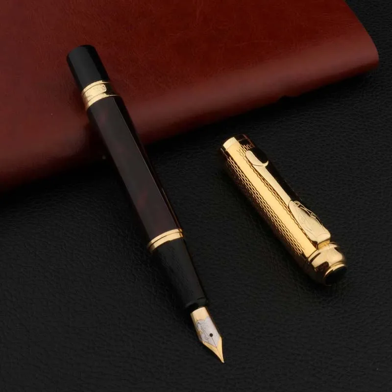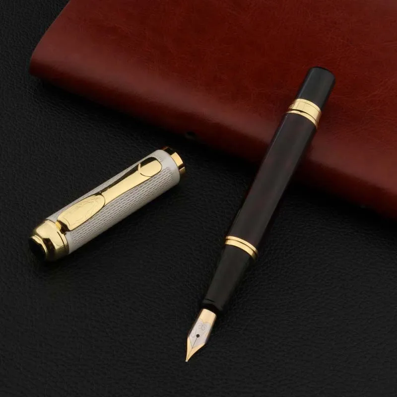 Ручка перьевая с гравировкой, элегантный металлический карандаш темно-красного и золотого цвета, Канцтовары для школы и офиса