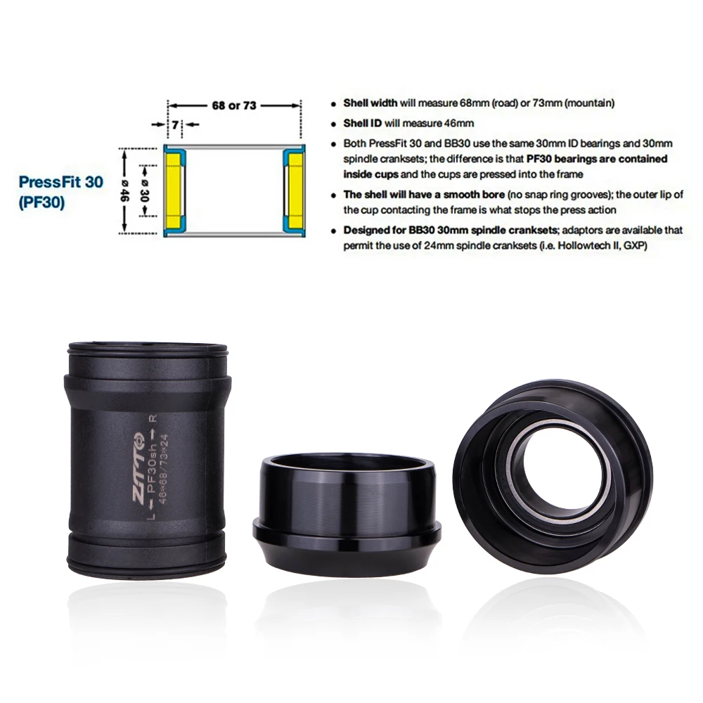 ZTTO PF30sh PF30 24 адаптер для велосипеда, пресс для нижних кронштейнов для горных и шоссейных велосипедов, запчасти 24 мм, кривошипная звезда