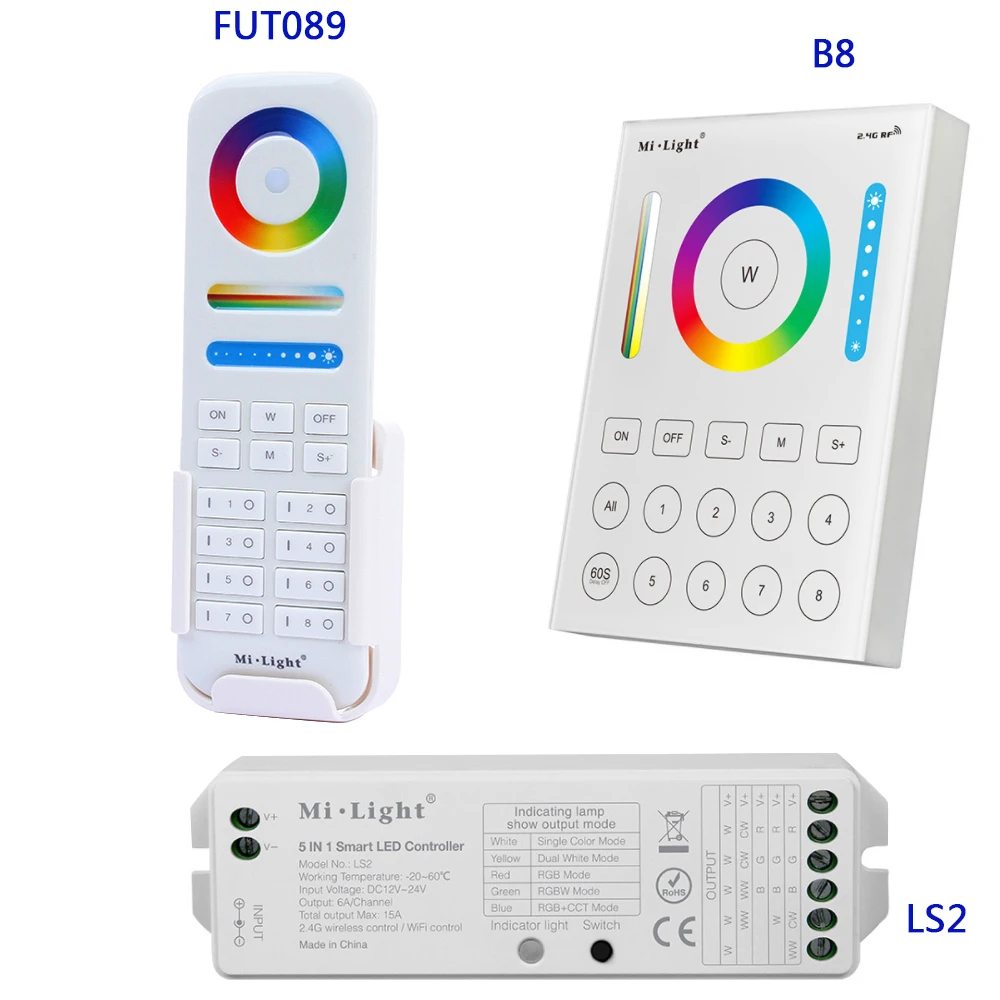 Miboxer 2,4G wireless 8 Zone FUT089 remote; Настенная сенсорная панель B8; Умный светодиодный контроллер LS2 5 в 1 для светодиодной ленты RGB + CCT