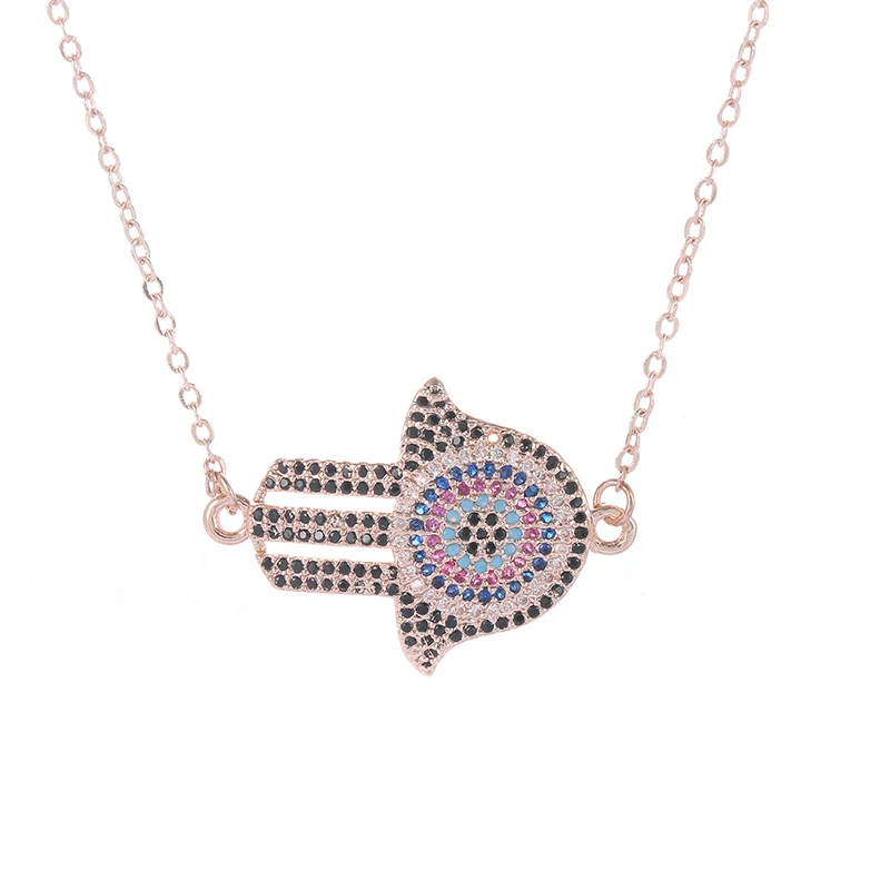 Ali Moda Прямая поставка микро паве красочные натуральные кристаллы Хамса Фатима ручной соединитель Женская Подвеска Ожерелье для вечеринки ювелирные изделия