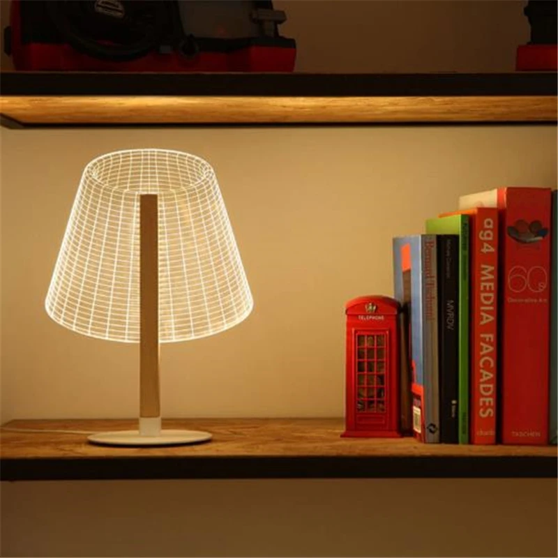 Настольная Светодиодная лампа с 3D-эффектом, с деревянной опорой, акриловый Абажур Светодиодный светильник ПА для гостиной, спальни, лампа для чтения с USB-разъемом