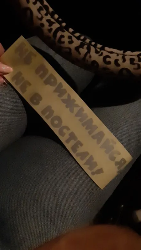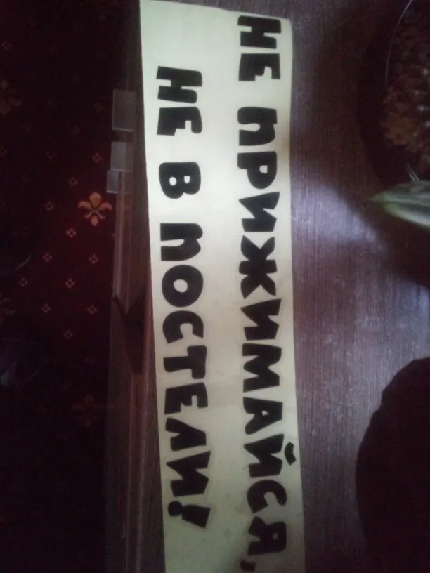 В принципе нормальная наклейка, но не хватало одной буквы "не прижимайся, 'Н'е в постели! "