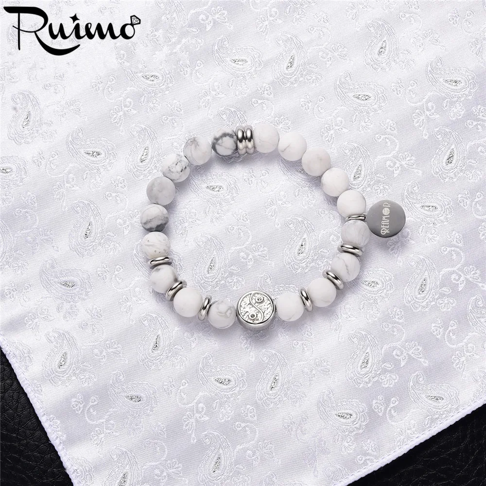 Браслет RUIMO из нержавеющей стали 316L с бусинами для тай-Цзи, белый бирюзовый говлит натуральный камень, эластичные браслеты и браслеты