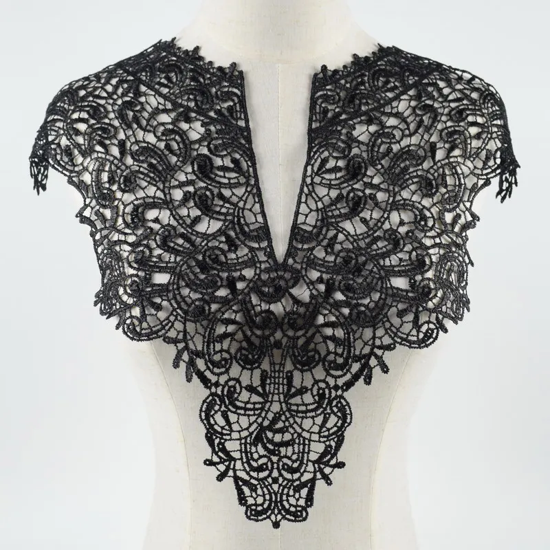 1 шт., белая и черная вышивка, Цветочная кружевная ткань для горловины, кружевная ткань для воротника сделай сам