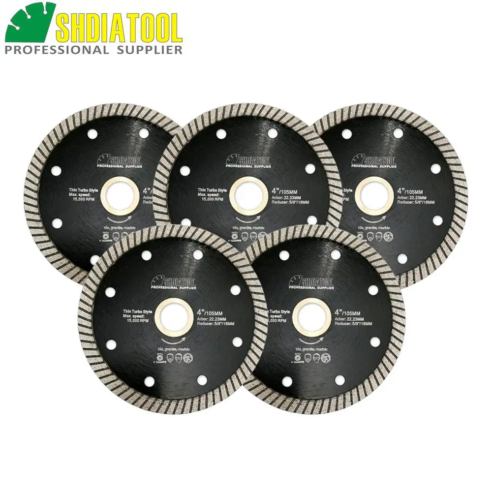 SHDIATOOL 5 шт 4 "105 мм Алмазные пилы горячего прессования супер-тонкие лезвия Turbo Ramic плитка Гранит отрезной диск алмазный диск колеса